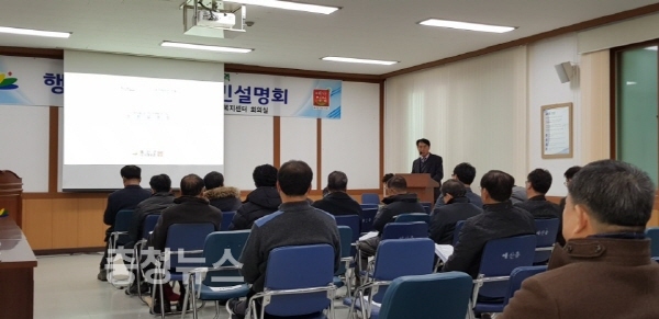 충남 예산군은 21일 예산읍사무소 회의실에서 지역주민이 참석한 가운데 도시재생 뉴딜사업 거점지역 행복주택 건립 사업 설명 및 주민 의견 수렴을 위한 주민설명회를 개최했다.