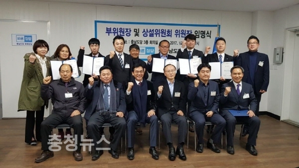 도당은 지난 21일 당사 회의실에서 조직 재정비와 함께 내년 6.13 지방선거 승리를 위한 “2017 충남도당 부위원장 및 상설위원장 임명식”을 갖고 부위원장단과 대변인을 비롯한 상설 위원장등 모두 11명을 임명했다.