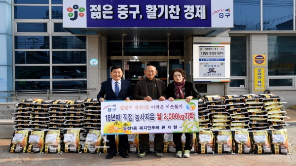 류씨는 지난 1월 설 명절을 앞두고 유천1동 주민센터에 어려운 이웃의 따뜻하고 행복한 명절을 기원하며 손수 농사지은 쌀 2,000㎏을 내놨다. 벌써 올해로 18년째였다.
