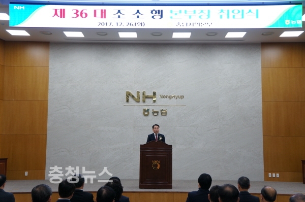 농협중앙회 충남지역본부 신임본부장에 조소행(54) 농협중앙회 회원지원부장이 26일 농협충남본부 대회의실에서 취임식을 갖고 2018년 1월1일자로 공식업무에 들어간다.