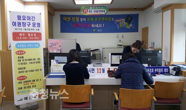 예산군청 민원봉사과 여권민원 창구 모습