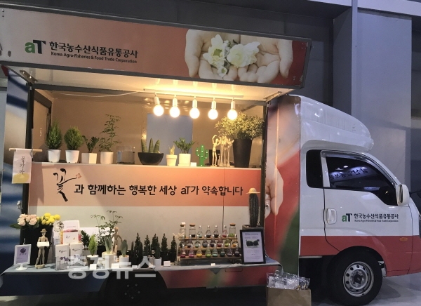 한국농수산식품유통공사(aT, 사장 여인홍)는 지난 27일부터 29일까지 양재동 aT센터에서 열린 2017 대한민국 소비박람회에 참가해 소비자 및 기업 관계자 등 1만여 명을 대상으로 새로운 꽃소비 트렌드인 경조사 신화환과 플라워트럭을 소개한다.