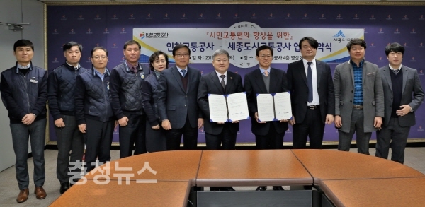 세종도시교통공사(사장 고칠진)와 인천교통공사(사장 이중호)는 지난 28일 인천교통공사 영상회의실에서 고칠진 사장, 이중호 사장 등이 참석한 가운데 상호 공동발전을 위한 업무협약을 체결했다.
