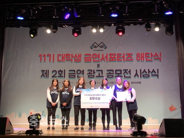 대전과학기술대학교(총장 김은기) 금연서포터즈팀이 한국건강증진개발원이 주최하고 보건복지부가 후원하는 전국 대학생 금연서포터즈 대회에서 최우수상을 수상했다.