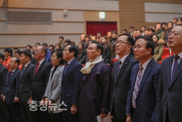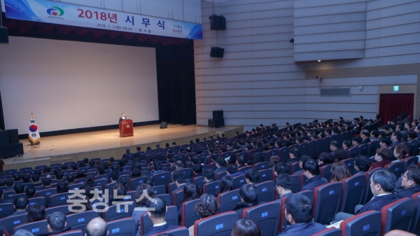 충남 천안시는 2일 시청 봉서홀에서 구본영 시장을 비롯한 전 직원이 참석한 가운데 ‘2018년 시무식’을 개최해 지난해를 돌아보고 새로운 시정방향을 제시하며 올해의 힘찬 출발을 다짐했다.