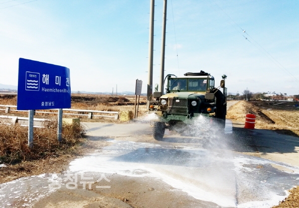 여기에 공군 제20전투비행단에서도 3일부터 제독차량을 동원해 해미천변을 비롯한 철새도래지에서 소독활동에 나서고 있다.