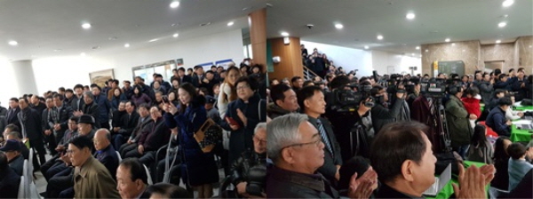 이날 민주당 유병국(천안3), 김종문(천안4) 충남도의원을 비롯한 지지자 500여 명이 참석해 기자회견장을 가득 메우는 등 경선 열기가 뜨거워 질 것으로 예상된다.