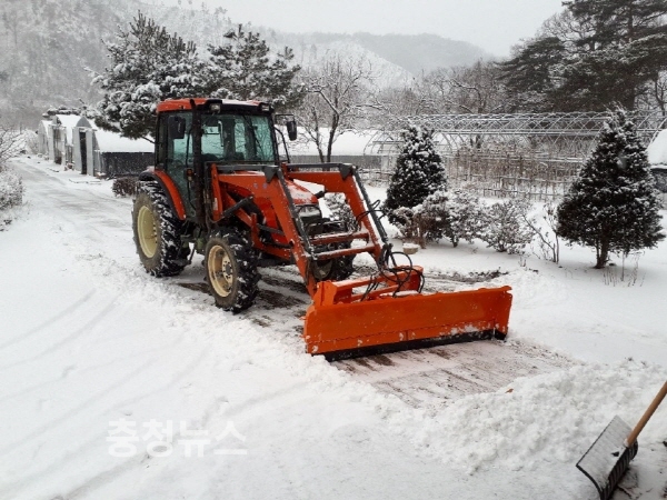 군에 따르면 주민참여예산위원회 제안사업 건의를 받아들여 비법정 도로 등 군청 제설장비 운행이 어려운 제설취약지역 마을에 트랙터에 부착해 사용 할 수 있는 트랙터용 제설기 보급을 추진했다.