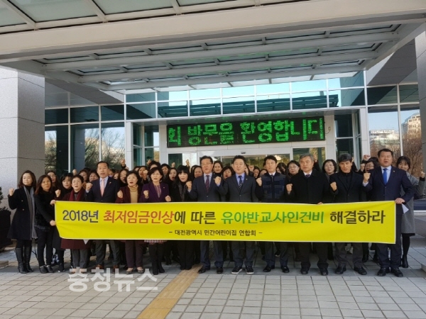 대전민간어린이집연합회는 12일 최저임금 상승에 따른 운영난에 누리과정 보육료 인상을 촉구하고 나섰다.