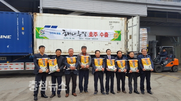 충남 당진시에 따르면 16일 당진 우강농협(조합장 강문규) RPC에서 무사고 항해와 현지에서의 인기판매를 기원하는 상차식이 열린 뒤 해나루쌀 10톤이 호주 시드니로 수출 길에 올랐다.