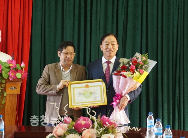 감사장에는 ‘다크롱 지역개발위원회는 따뜻한 사랑의 실천으로 다크롱 바낭 꼬뮨에 코크 초등학교를 건설해 주신 대전교육청에 진심 어린 감사의 마음을 전합니다’라고 적혀있다.