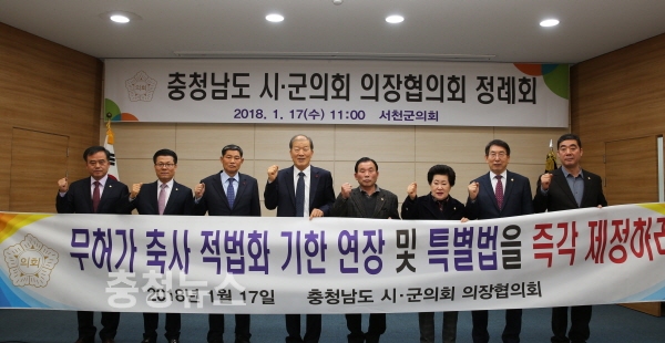 충청남도 시군의회의장협의회(협의회장 조남일)가 "무허가 축사 적법화 기한 연장 및 특별법 제정 촉구 결의안”을 만장일치로 채택했다.