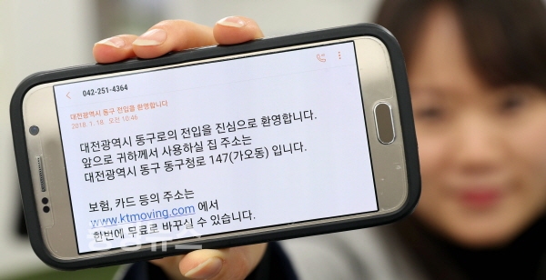 이번 서비스는 행정안전부와 KT 간의 업무협약으로 추진되며, 신고서에 기재된 정보를 바탕으로 전입신고 후 세대주에게 환영 인사와 전입 하는 곳의 도로명주소가 담긴 문자를 발송하게 된다.