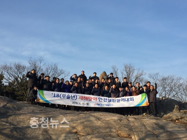 한국서부발전(사장직무대행 정영철)은 무술년 새해를 맞아, 지난 15일 충남태안 백화산 정상에서 본사 및 사업소 직원 50명이 참석한 가운데 무재해, 무사고 달성을 다짐하는 “안전실천결의대회”를 개최했다.