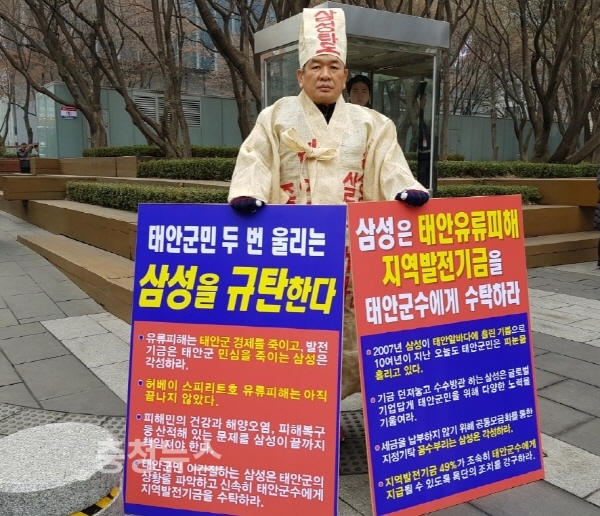 삼성측에서 태안군수에게 기금을 기탁할 때까지 1인 시위 지속