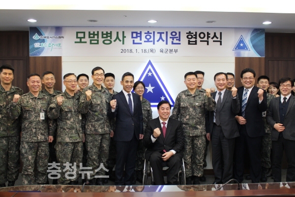 한국도시가스협회와 육군본부, (사)그린라이트는지난 18일 육군본부에서 도시가스협회 윤종연 부회장, 육군 정진경 소장, (사)그린라이트 김선규 회장 등 관계자들이 참석한 가운데 취약계층 가정의 군 장병 면회 지원을 위한 ‘모범병사 면회지원사업’ 협약식을 가졌다.