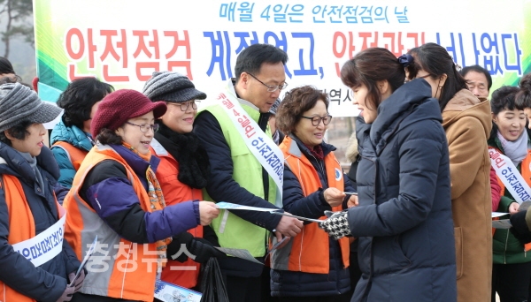 이날 행사는 안전모니터 봉사단, 지역자율 방재단, 산불감시요원 등 100여 명이 참여한 가운데 주민과 등산객을 대상으로 ▲겨울철 난방기구 사용에 따른 화재예방 홍보 ▲폭설․설해 등 겨울철 재난대비 안전사고 예방을 위해 중점 홍보했다.