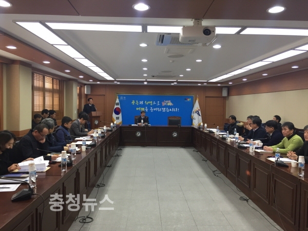 부여군에서는 지난 19일 브리핑실에서 16개 읍면 산업팀장 연석회의를 가졌다