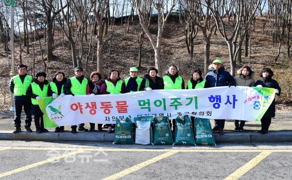 (사)자연보호중앙연맹 대전광역시 중구협의회(회장 김성배) 주관으로 회원 30여명이 참여해 산기슭 곳곳에 사료 등 200kg의 먹이를 놓았다.