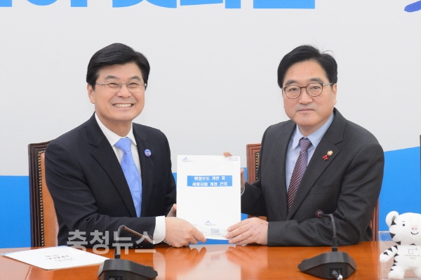 이춘희 세종시장은 23일 지역 현안사업인 행정수도 개헌과 세종시법 개정(의원 정수 확대)을 위해 더불어민주당 우원식 원내대표와 이인영 국회의원(헌법개정소위원장)을 차례로 방문했다.