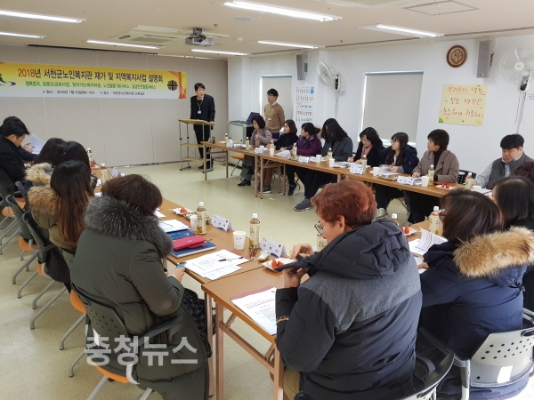 충남 서천군노인복지관(관장 이경미)은 지난 23일 어메니티복지마을 본관 제2교육실에서 사회복지실과 13개 읍·면 행정복지센터 맞춤형복지팀장 및 복지허브화 담당자 등 20여명이 참석한 가운데 2018년 재가 및 지역복지사업 설명회를 개최했다.