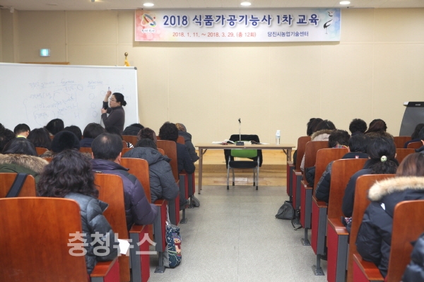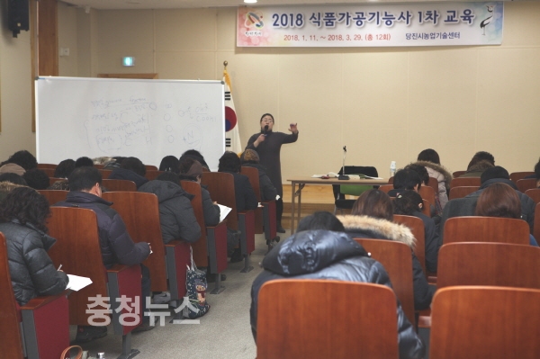 충남 당진시농업기술센터가 지난 11일부터 운영하고 있는 식품가공기능사 자격취득과정 이론교육이 지역 농업인들로부터 큰 관심을 끌고 있다.