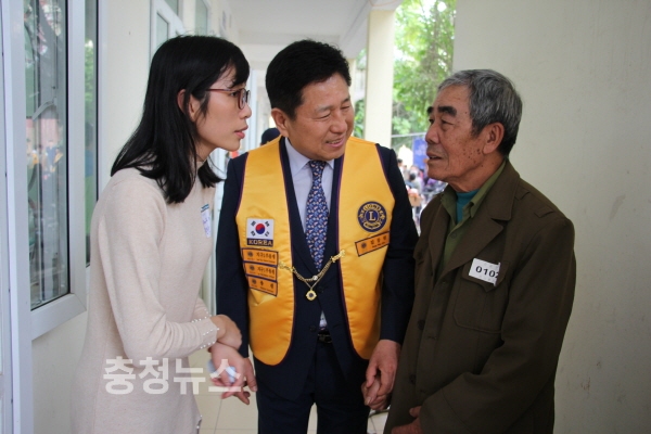 국제라이온스협회 356-B지구, 김동원 총재가 베트남 합동의료봉사팀을 찾은 환자와 이야기를 나누고 있는 모습