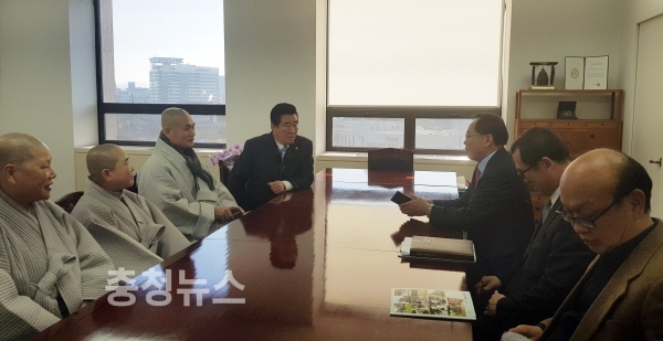 이날 윤 의장을 비롯해 한국문화연수원장인 제안스님, 동학사 정운스님 등은 김종진 문화재청장을 만나 동학사 문화원 보수정비를 건의했다.