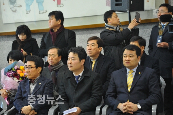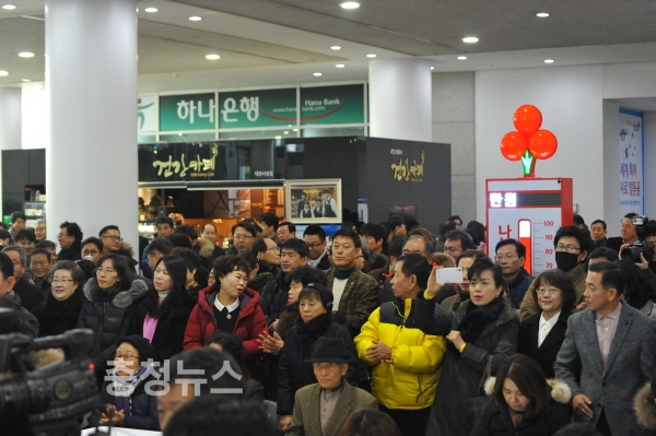 이날 곽영교 전 대전시의회 의장과 송대윤, 박병철 대전시의원을 비롯해 지지자 300여 명이 모여 허 청장의 출마선언에 힘을 실어줬다.