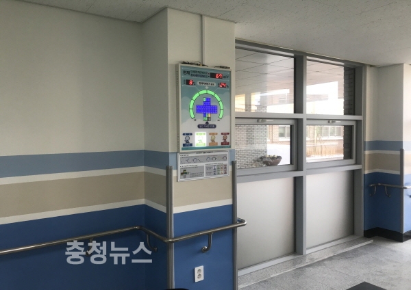 충남 아산시가 지난 29일 미세먼지 취약계층인 초등학생들의 건강을 보호하기 위해 전국최초로 관내 45개 모든 초등학교에 미세먼지 알림판을 설치했다.