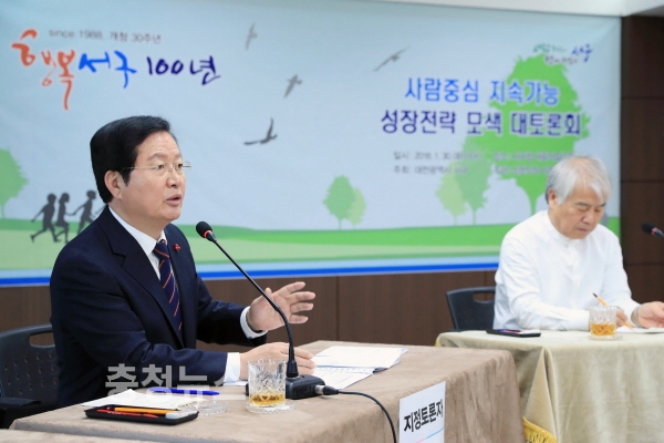 대전 서구(구청장 장종태)는 30일 구청 대회의실에서 도시재생 분야 전문가와 지역주민 등 60여 명이 참여한 가운데, ‘사람 중심의 지속 가능 성장전략’을 주제로 토론회를 열었다.