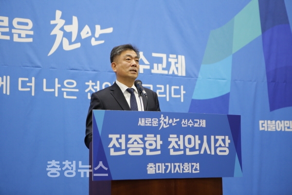 전종한 천안시 의회 의장은 31일 10시 독립기념관 밝은누리관에서 기자회견을 열고 천안시장 출마를 공식 선언했다.
