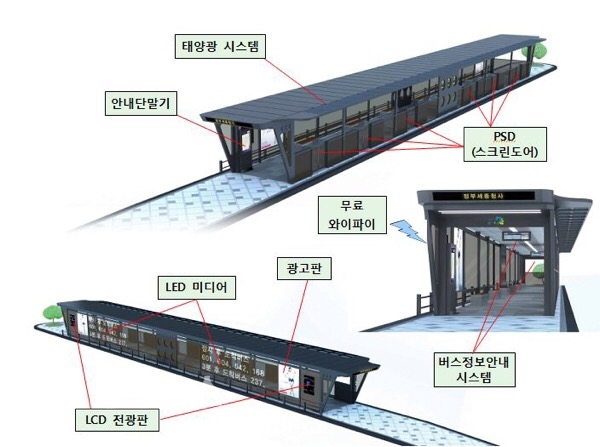 이번에 설치한 첨단 BRT정류장은 반개방형 정류장으로, 승객의 안전을 고려한 스크린도어(Screen door), 발광다이오드(이하 LED) 미디어, 무료 와이파이(Wi-Fi), 버스정보안내시설 등 각종 편의시설을 설치했다.