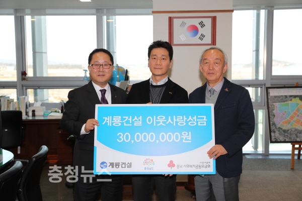 계룡건설이 충남도내 어려운 이웃을 위한 성금 3천만 원을 쾌척했다.