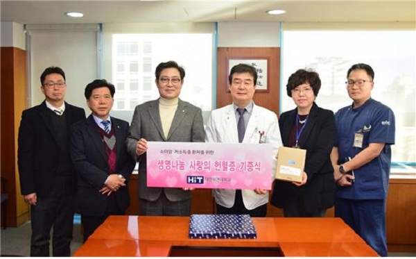 홍인표 을지대병원장, 서중석 대전보건대 총장을 비롯한 주요 관계자 6명이 참석한 이번 전달식은 대전보건대 임직원 및 학생들이 모은 헌혈증 250매를 을지대학교병원에 기부하기 위해 마련됐다.