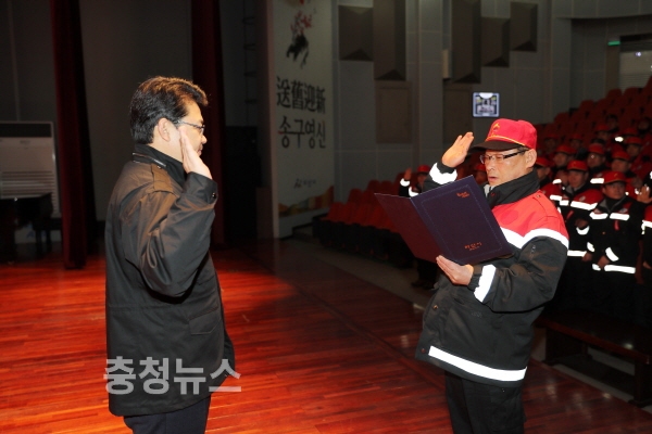 복기왕 아산시장은 인사말을 통해 지금까지 아산관내 푸른산림의 관리에 힘써주신 관계자들에게 치하를 전달함과 동시에 한순간의 산불로 이 모든 것이 수포로 돌아갈 수 있으니 산불예방활동을 다시 한 번 더 강조하면서 “이를 지키고, 가꾸는 일 또한 그 무엇보다 중요한 사항으로 진화대원 및 감시원들의 역할의 중요성을 인식해 적극적인 자세로 감시활동 등에 임해 줄 것”을 당부했다.