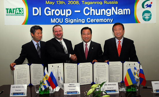 이완구 충남지사와 신준희 보령시장, 로스토프주 돈인베스트그룹(Doninvest Group․ DI 그룹) 파라모노프(Paramonov)회장, 타가즈코리아 이승철 사장은 13일 타간로그시 타가즈 자동차 공장에서 2012년까지 충남에 6억 5000만 달러를 들여 자동차 부품 생산 공장을 건립하는 내용을 골자로 한 양해각서(MOU)를 체결했다.