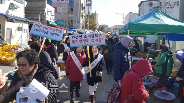 이날 캠페인은 최저임금 인상에 따른 물가 급증 우려와 겨울철 한파에 따른 에너지 수요 급증에 대처하기 위해 진행됐으며, 홍성·광천·갈산 전통시장 및 내포신도시 상가 밀집지역 등 4개소에서 가두행진 캠페인을 전개했다.