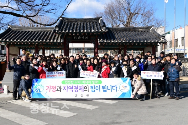 충남 홍성군은 6일 관내 소비자단체(소비자교육중앙회, 여성소비자연합회) 및 전통시장 상인회, 공무원 등 100여명이 참여한 가운데 2018년 설 대비 물가안정 및 에너지 절약 합동캠페인을 실시했다.