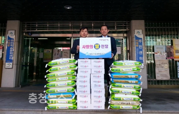 대전 으뜸새마을금고(이사장 이희각)에서는 7일 설 명절을 맞아 어려운 이웃에 써달라며 떡국떡 100상자와 백미20kg 18포를 대덕구 비래동(동장 정진일)에 후원했다.