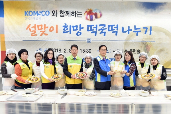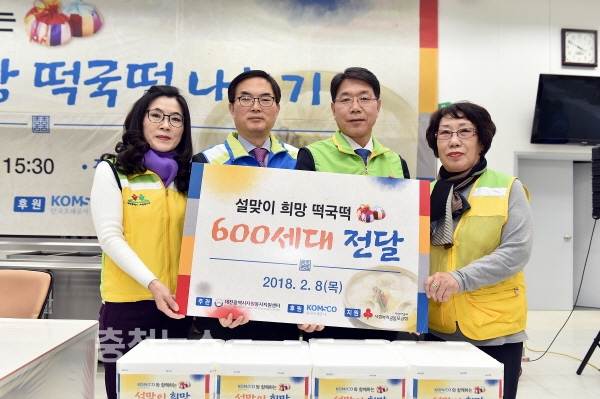한국조폐공사(사장 조용만) 8일 대전시와 함께 대전시청 1층 목련홀에서 지역사회 소외계층을 위한 ‘설맞이 희망 떡국 떡 나눔 행사’를 펼쳤다.
