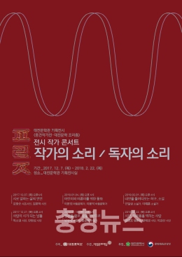 대전문화재단(대표이사 이춘아)이 운영하는 대전문학관(관장 박진용)이 중견작가 콘서트‘작가의 소리·독자의 소리’의 마지막 이야기를 이달 22일 대전문학관 기획전시실에서 개최한다.
