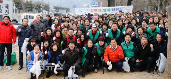 지난 9일 오전 비래동 대전TG 일원에서 가진 대청소에서 2018 평창 동계올림픽의 성공적인 개최와 설 명절을 맞아 고향을 찾는 내·외국인들에게 깨끗하고 청결한 대덕구의 이미지를 주기 위해 귀성객 차량이 몰리는 대전TG 일대 쓰레기를 집중 수거했다.