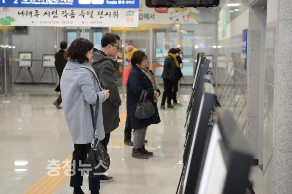 공주시(시장 오시덕)가 지난 10일 공주역에서 오시덕 시장을 비롯해 기관, 단체장, 지역주민, 관광객 등이 모인 가운데 ‘나태주 시인 작품 특별전’ 개관식을 가졌다고 밝혔다.