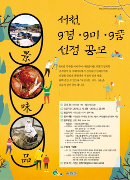 충남 서천군(군수 노박래)이 지역 문화 관광 콘텐츠를 이끌어 갈 '서천 9경·9미·9품' 선정 공모에 나섰다.