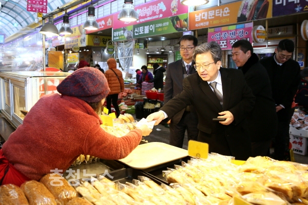 이원재 행복청장이 설 명절을 앞둔월 12일 세종시 조치원읍에 있는 ‘세종전통시장’을 방문, 전통시장 활성화를 위해 지역농산물을 구입하고 시장 상인들의 애로사항을 청취하는 시간을 가졌으며, 구입한 농산품은 사회복지시설에 전달했다.