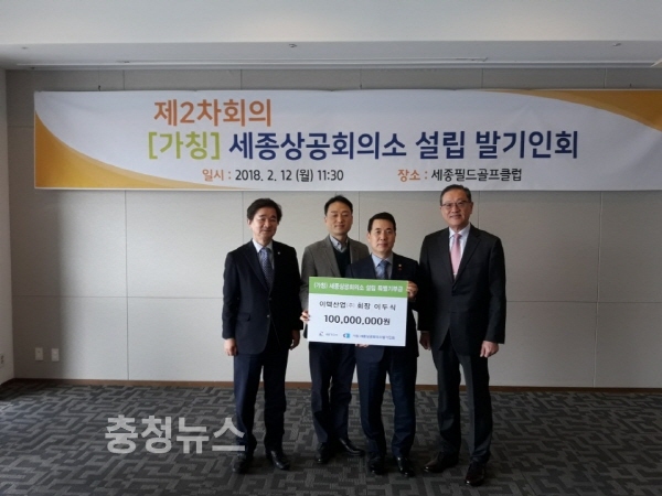 세종상의 발기인회에 따르면 이두식 이텍산업(주) 회장이 12일 세종필드골프클럽에서 열린 (가칭)세종상공회의소 설립 발기인회 2차 회의에서 세종상의 설립을 위한 특별기부금 1억 원을 전달했다고 12일 밝혔다.