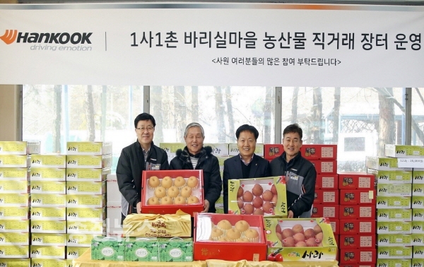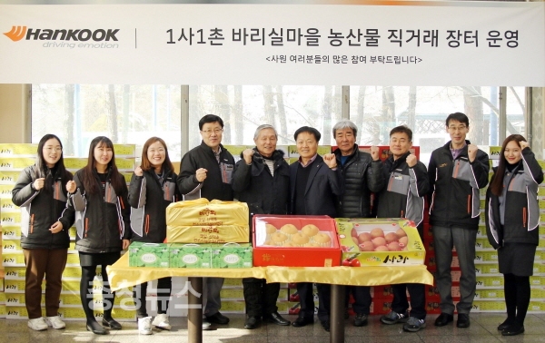한국타이어(대표이사 조현범)는 충남 금산군 소재 금산공장에서 설 명절을 앞두고 12일부터 14일까지 1사1촌(一社一村) 바리실마을 주민들과 함께 지역 농산물 소비 촉진을 위한 농산물 직거래 장터를 운영한다.