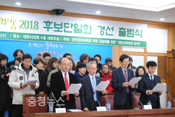 13일 대전교육희망 2018은 대전시의회에서 후보단일화 경선 출범식을 열고 진보교육 토대를 만든다.