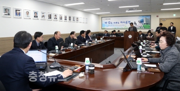 2월 출무일은 ▲기획예산담당관실 각종 기금 운용·개선 계획 ▲자치행정과 2018년 상반기 정원조정 및 읍면동 복지허브화 추진 계획 ▲안전총괄과 「당진시 사회재난구호 및 복구 지원에 관한 조례」제정 ▲사회복지과 당진시 자원봉사센터 민간위탁 추진 상황보고, 당진지역자활센터 지정